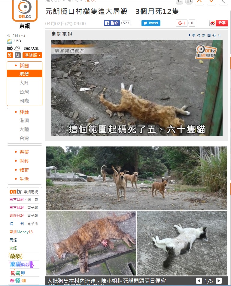 【動物專訊】《東方日報》報道元朗欖口村收容流浪貓的貨倉,被流浪狗闖入殺貓,並指狗隻是民主黨區議員黃偉賢所養,更曾找漁護署捉流浪狗。黃偉賢對本報強調,所養狗隻都是屋內飼養,沒有出外殺貓,又指貨倉有鐵欄,估計流浪狗應是從其他地方空隙走入。他又強調,家中也有養貓,他養的狗與貓相處並沒有問題。他亦不認同找漁護署捉流浪狗,強調自己養的狗大部分是從漁護署贖回來的。