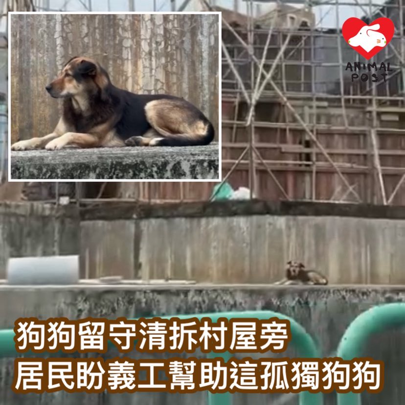Gina表示,該村屋於上個月開始清拆工程,但在清拆之前該屋已經沒人住,但就看到一隻狗經常留守在屋旁,即使沒瓦遮頭也風雨不改,令她擔心狗狗是否被人遺棄。她說:「本身這間屋的人都已經搬走,狗狗就一直守住間屋,我放狗的時候有近距離見過隻狗,他不怕人亦不怕狗,就算自己走了出去散步,最後都會返去間屋。」