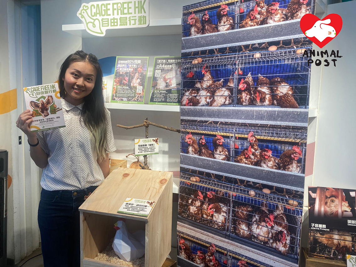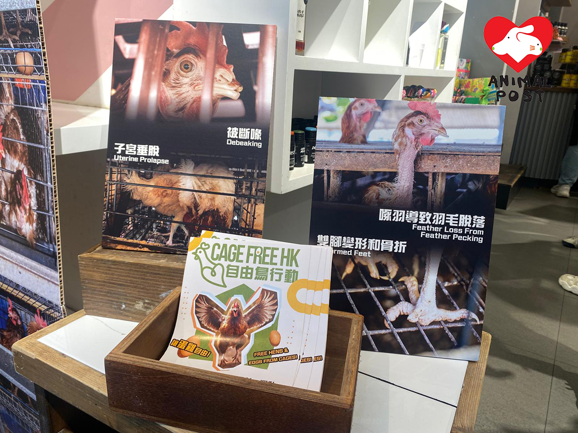 地球共惜企業合作及項目總監Wendy坦言,現時全球絕大部分的蛋雞籠場,都是格子籠農場,每天都充滿著不人道的殺害和傷害生命,小公雞一出生便被輾碎,大量母雞困在幾乎無法動彈的籠中,因身體和精神壓力而拔光自己的毛,還因此而被剪嘴,籠內滿布糞便,因為長期困籠令腳部變形,甚至因過度產蛋而出現子宮垂脫。她說:「每隻母雞的生存空間比一張A4紙還小,你可以想像一世睡在無法伸直腳的床感覺是怎樣,他們完全無法表現自然天性行為。一般雞的壽命是10年,而蛋雞生存日子只有500日,當產蛋到一段時間便會被淘汰。」