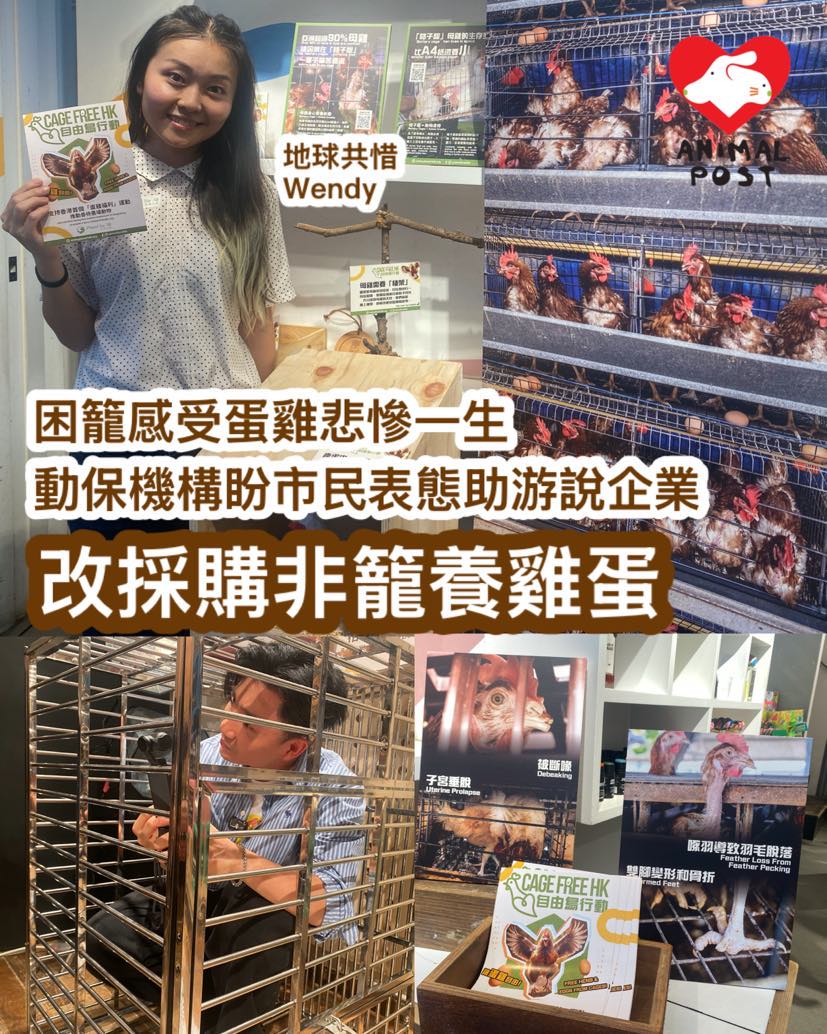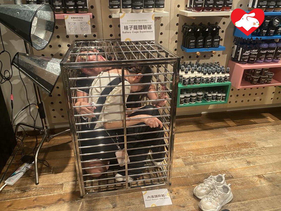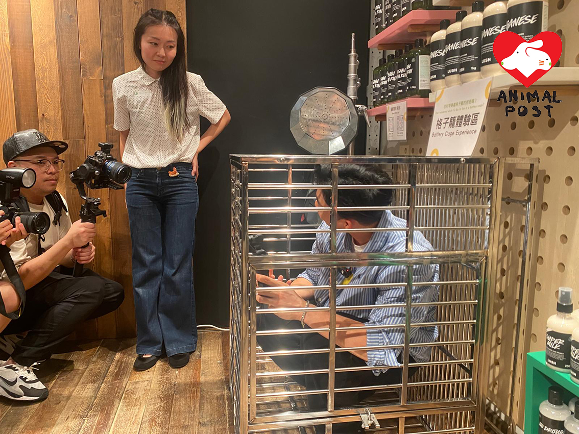 【動物專訊】雞蛋是全球大量消費的食物之一,香港更是人均耗蛋量全球第一,但蛋雞農場的恐怖畫面卻不多人知道。動保機構「地球共惜」近日和零殘忍英國美妝品牌LUSH合作,於LUSH銅鑼灣分店設「格子籠」公眾體驗區,讓市民進入籠內體驗籠養雞的悲慘一生,並希望藉更多市民關注和參與「自由鳥行動」聯署( www.planet4all.org/petition-cage-free-hk ),讓他們可以有更強大的聲音去游說本地企業改為人道採購「非籠養雞蛋」。