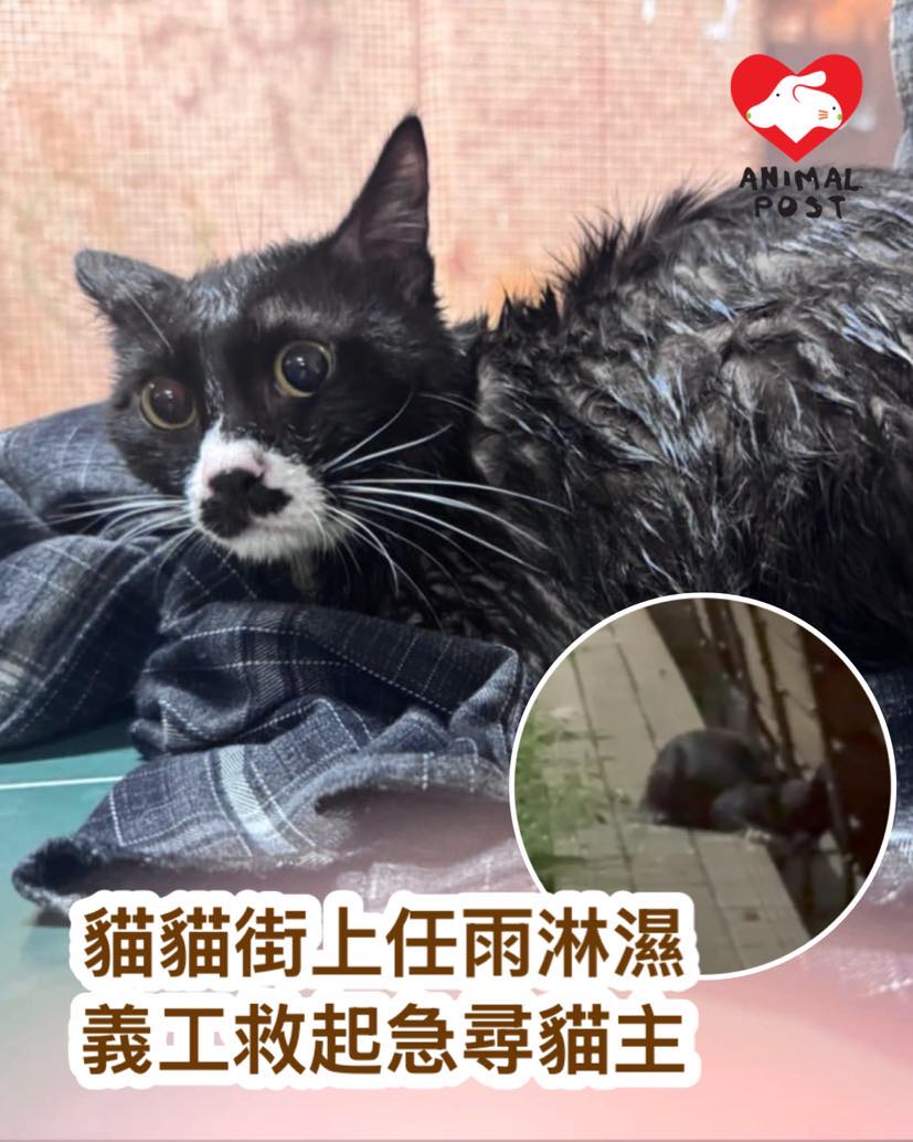 貓貓街上任雨淋濕 義工救起急尋貓主