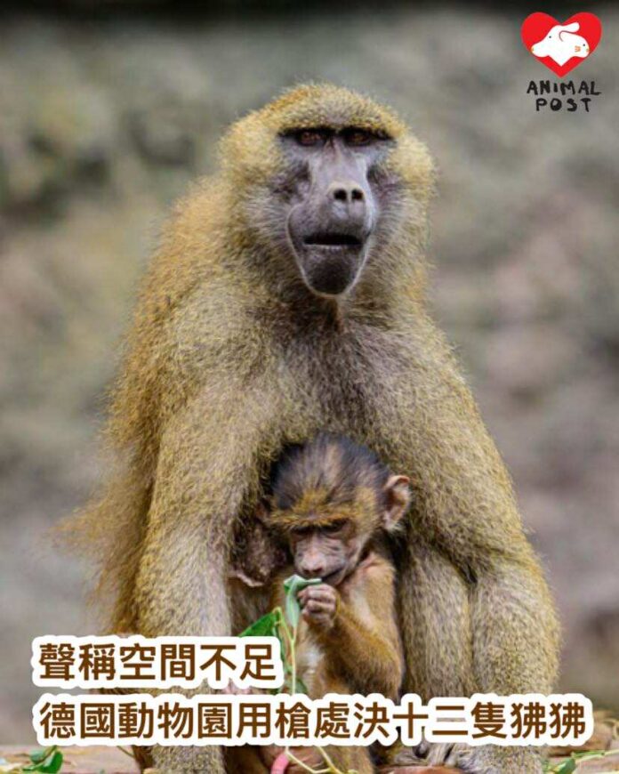 位於德國南部的紐倫堡動物園指現時園內設施只能容納最多25 隻狒狒,但狒狒數量已增至43隻,該園昨日以營運理由關閉,更有警員到場把守,原來就是用槍處決當中12隻狒狒。該園總監Dag Encke聲言無法擴充園區空間,亦不可能將動物放到野外。