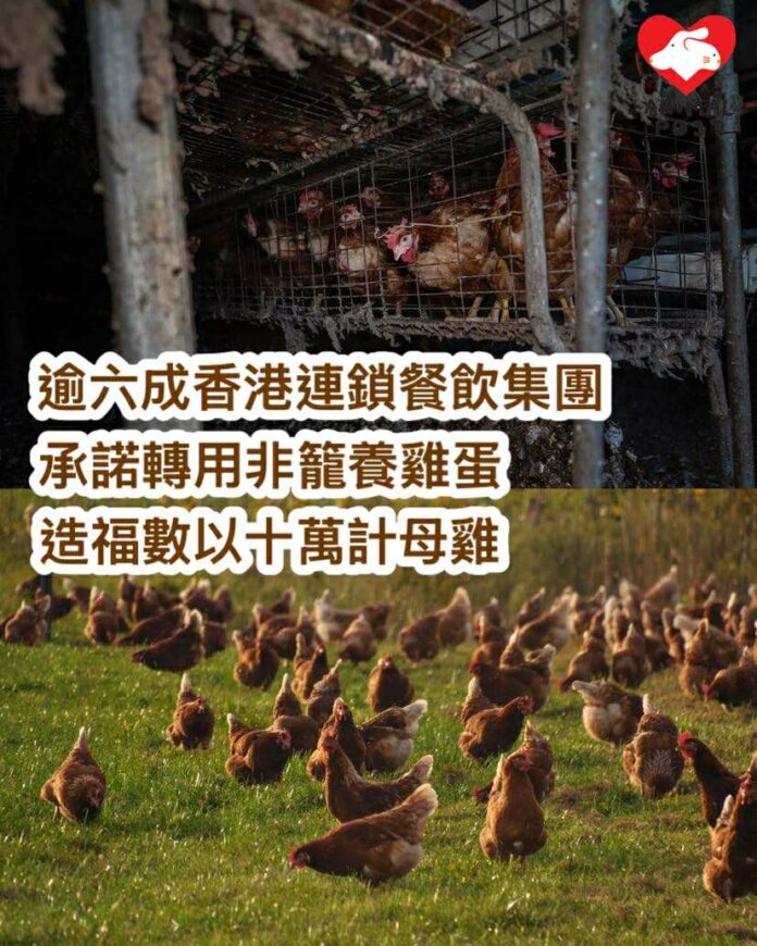 【動物專訊】現時大多數雞蛋食品來自環境惡劣、充滿殘酷虐待的籠養雞場,但在不少動保機構努力游說下,越來越多食肆改用非籠養雞蛋,讓母雞的福利得到改善。國際非牟利組織 Lever Foundation早前發布《2025香港餐飲業非籠養雞蛋評分卡》,顯示逾六成香港主要連鎖餐飲集團,已設定轉用非籠養雞蛋的目標及時間表,包括譚仔雲南米線、亞洲國際餐飲集團、KFC、Pizza Hut等,而大家樂和大快活亦正制訂相關政策,如最終全部落實,全港1,500多間食肆將採用非籠養雞蛋,造福數以10萬計母雞。
