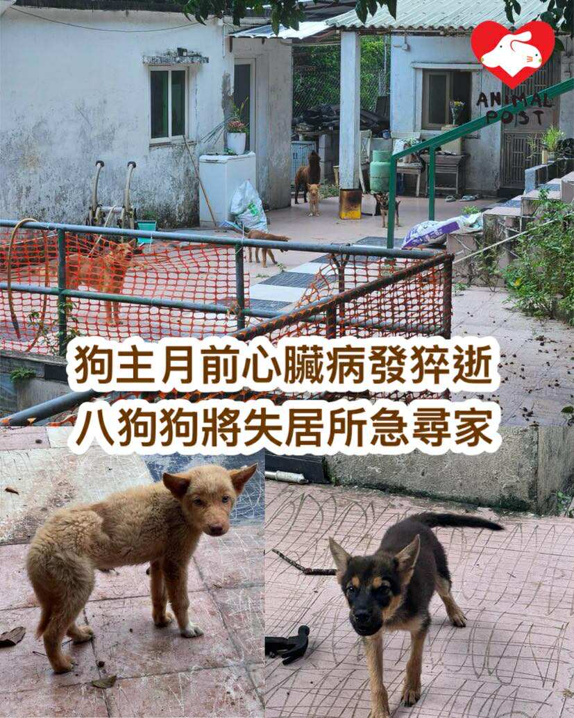 狗主約一個月前突然離世,遺下8隻狗狗。