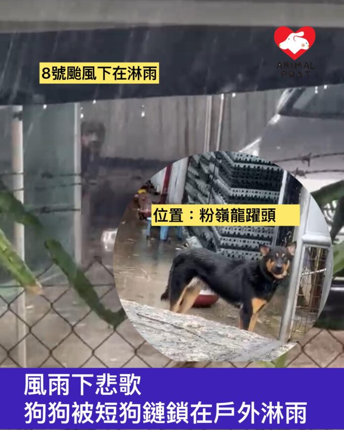 Home News 風雨下悲歌 狗狗被短狗鏈鎖在戶外淋雨