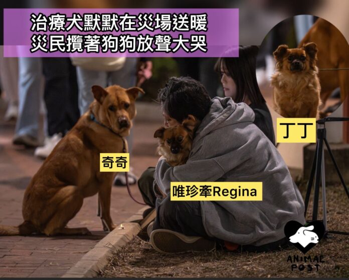【動物專訊】大埔宏福苑造成逾百人和動物的傷亡,這場火災帶來的傷痛,並非筆墨所能道出。有動物機構帶了兩隻治療犬默默在災場附近,盼望為需要的人送上一個擁抱,帶來一點安慰。