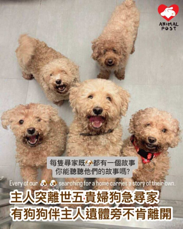 【動物專訊】動物機構LAP (Lifelong Animal Protection Charity) 早前接手了一單令人心痛的求助個案,5隻貴婦狗的主人在家中突然離世,隔了數天才被人發現,當警員到場時,發現其中一隻狗狗還一直伴在主人遺體旁不肯離開,十分忠心和重情。現時5隻狗狗已經由LAP接手,LAP希望能夠為他們找到領養家庭,讓失去依靠的他們得到新主人的愛。