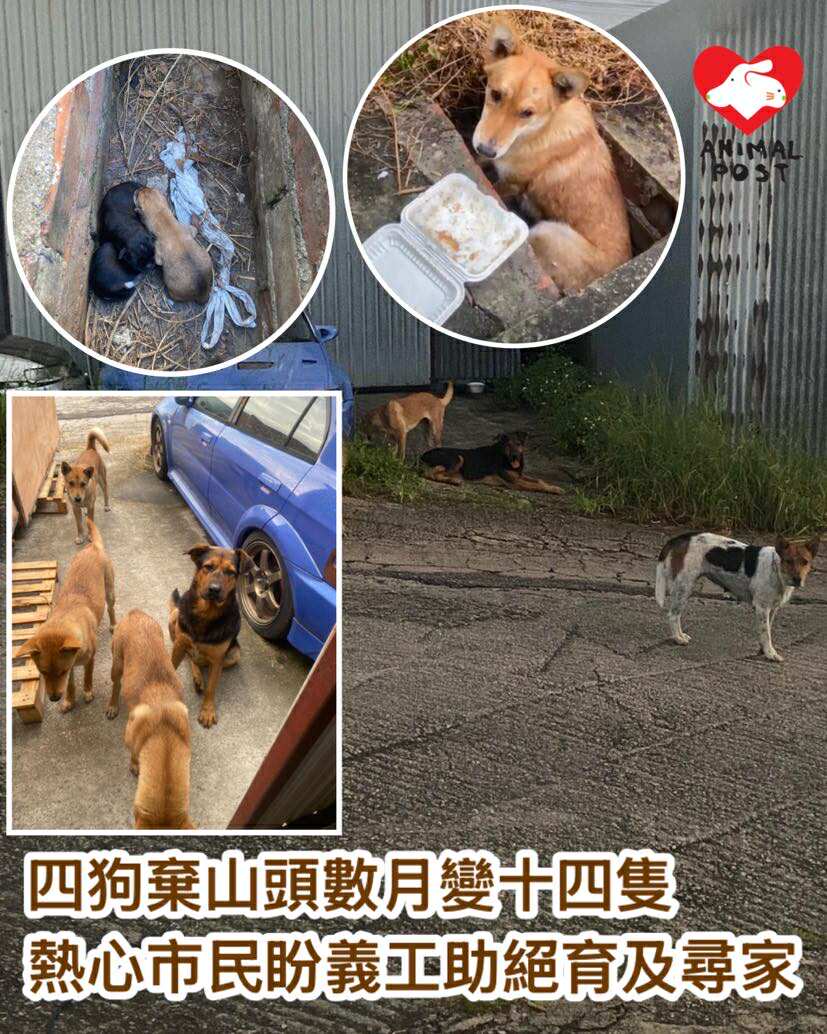 Norman表示,數個月前發現有4隻狗走到山上,「我最初以為是倉狗,所以沒有注意,後來發現一隻三色狗媽媽生了6隻狗B,跟著日前由見到一隻估計是第二代的唐狗女生了幾隻BB出來,還躲到我對面倉的坑渠餵奶,我便意識到情況開始失控,怕他們會繼續生B,可能會亂倫,亦怕狗狗多到其他居民接受不到而投訴。」