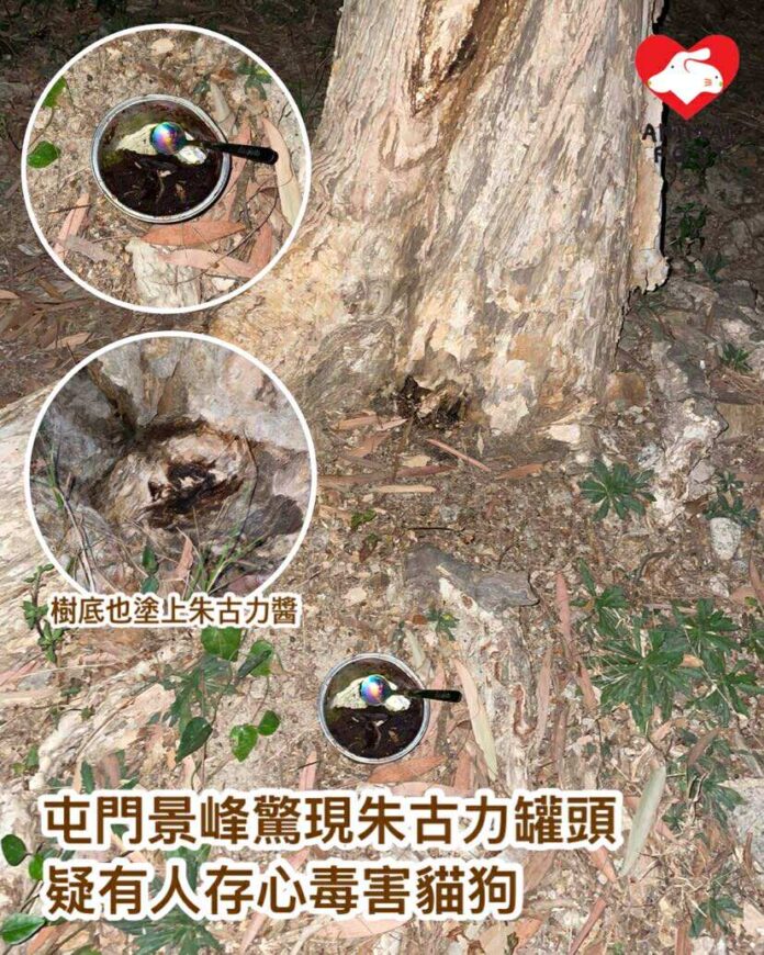 該熱心市民表示,該罐頭估計是貓罐頭,卻被人掏空再放入高濃度朱古力,「我嗅過百分百肯定是朱古力,而且非常高濃度,一定不是普通的朱古力醬。」她又表示,更恐怖是附近的樹底都被人塗上朱古力醬,明顯是惡意要讓貓狗受害。