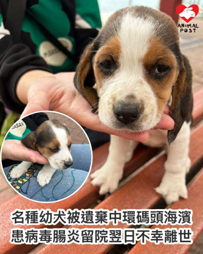 【動物專訊】對動物義工而言,街上發現被人遺棄的名種幼犬,往往都會有最壞的預算,因為很大機會是有病而被繁殖者或買狗者丟棄。有市民日前在中環碼頭海濱發現一隻不足兩個月大幼犬沒精神地坐在燈柱旁,隨即向浪浪協進會求助,小狗送醫後證實患上病毒性腸炎和嚴重肺炎,最終在翌日不幸離世,結束短暫的一生。