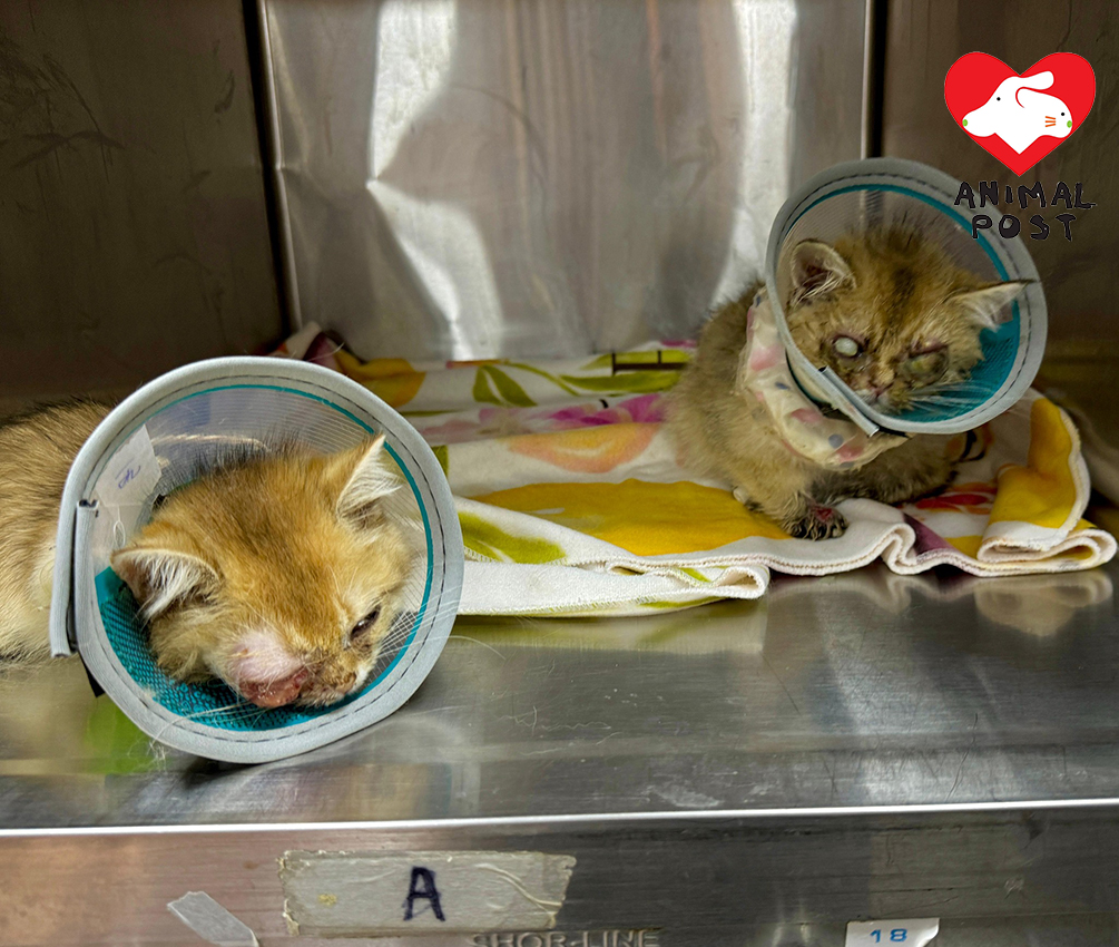 兩小貓早前被人遺棄,眼睛均嚴重發炎保不住。