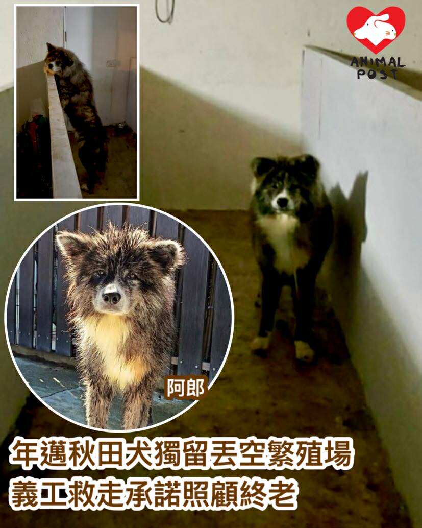 【動物專訊】無良繁殖者將利益建築於毛孩痛苦之上,在無利可圖結業時,更一走了之,被當作牟利工具的毛孩慘遭遺棄。浪浪之家早前接收一隻可憐的12歲秋田犬「阿郎」,他是無良繁殖場主結業後所遺棄的100多隻狗狗之一,更慘的是當其他狗狗陸續獲救,他卻獨留在空蕩蕩的場內無人問津,甚至3天缺水缺糧。浪浪之家創辦人April不忍阿郎孤獨等死,將他救了回來,只盼阿郎的晚年能夠充滿溫暖和陽光。