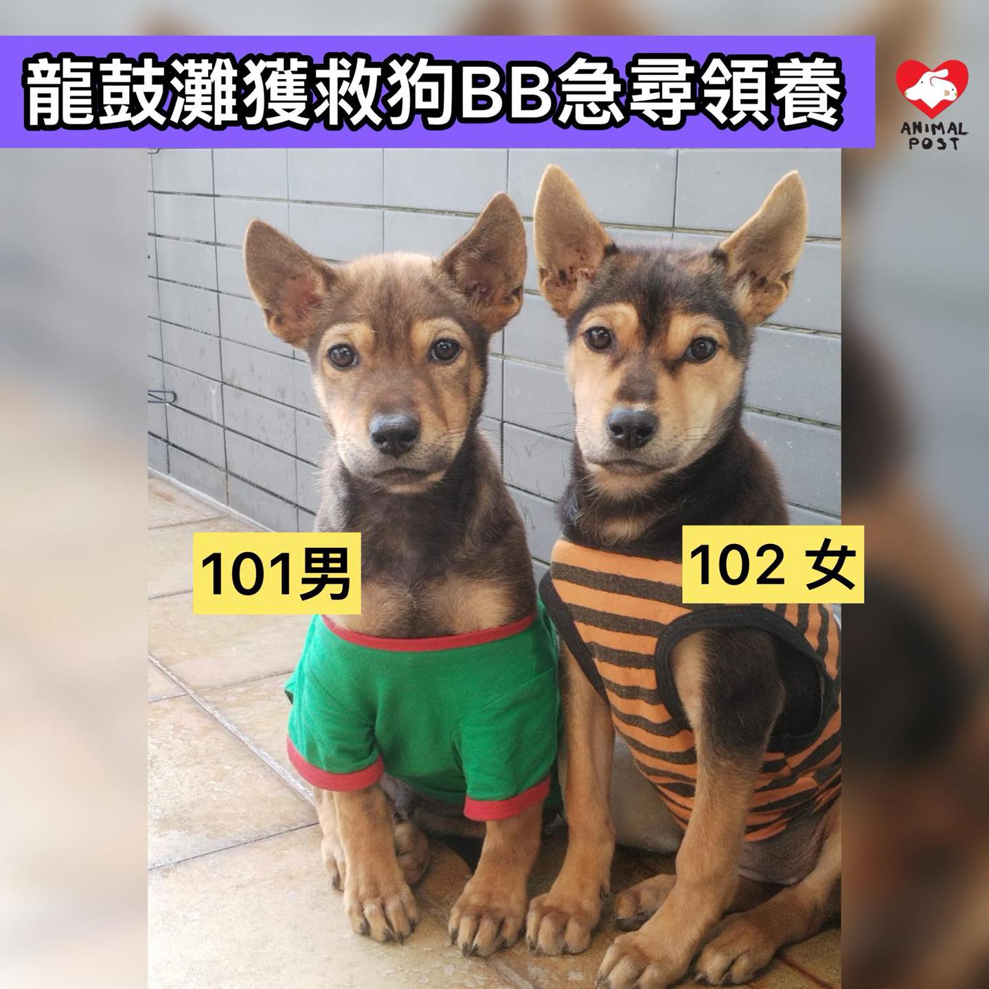 她坦言,現時兩狗約兩個半月大,正是尋家的黃金期,將來繼續長大,尋找領養的難度只會越來越大,因此希望趁這段時間盡力為他們尋找領養家庭。她十分感謝資深義工Amy為兩狗提供尋家機會,於今明兩日及2月1日,101和102都可以出席深健獸醫診所的領養日。