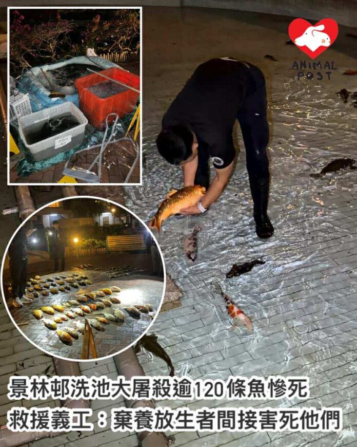 景林邨洗池大屠殺逾120條魚慘死 義工通宵救援:棄養放生者間接害死他們