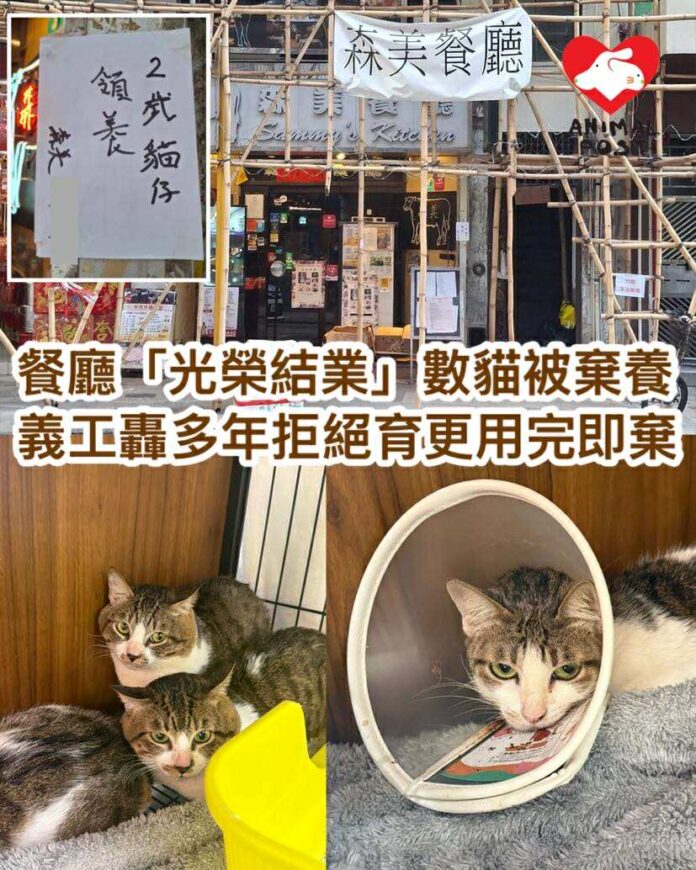 早前有市民在網上發帖,指森美餐廳本月結業,需要為一隻2歲貓貓尋家。據知該貓貓其後獲人收養,但沒想到被棄養的貓貓不只那一隻。