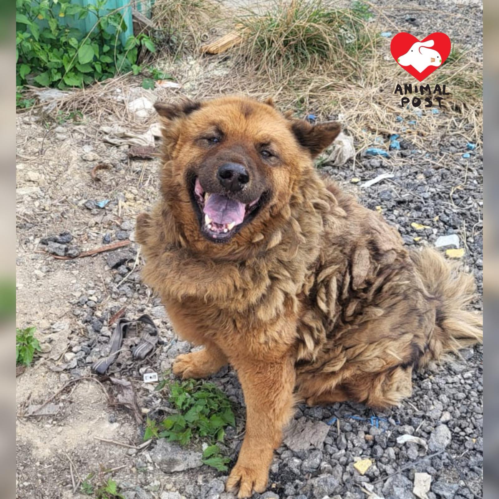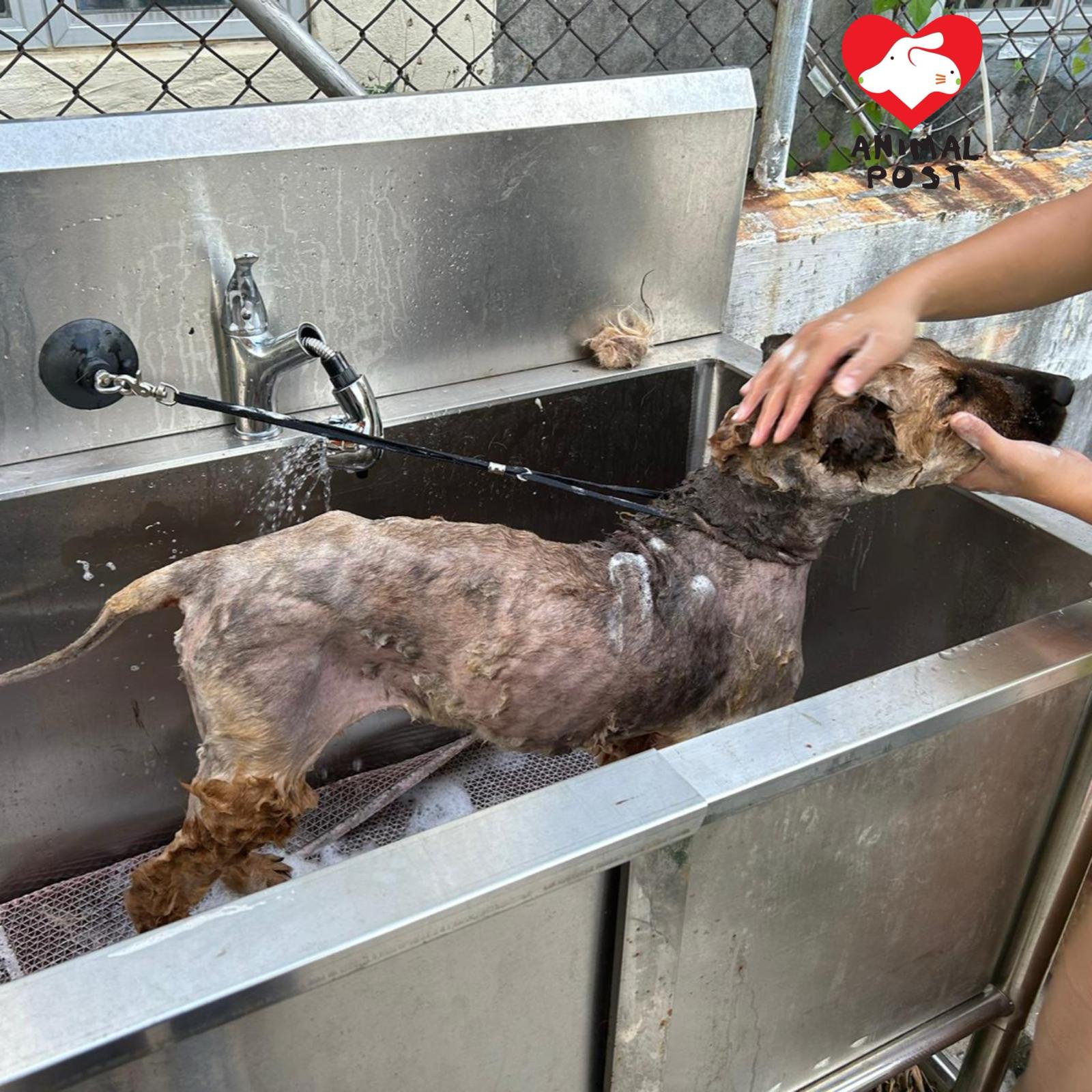 烏烏原本是錦上路貨倉的倉狗,獲救時皮膚很差,毛都結成一塊塊。