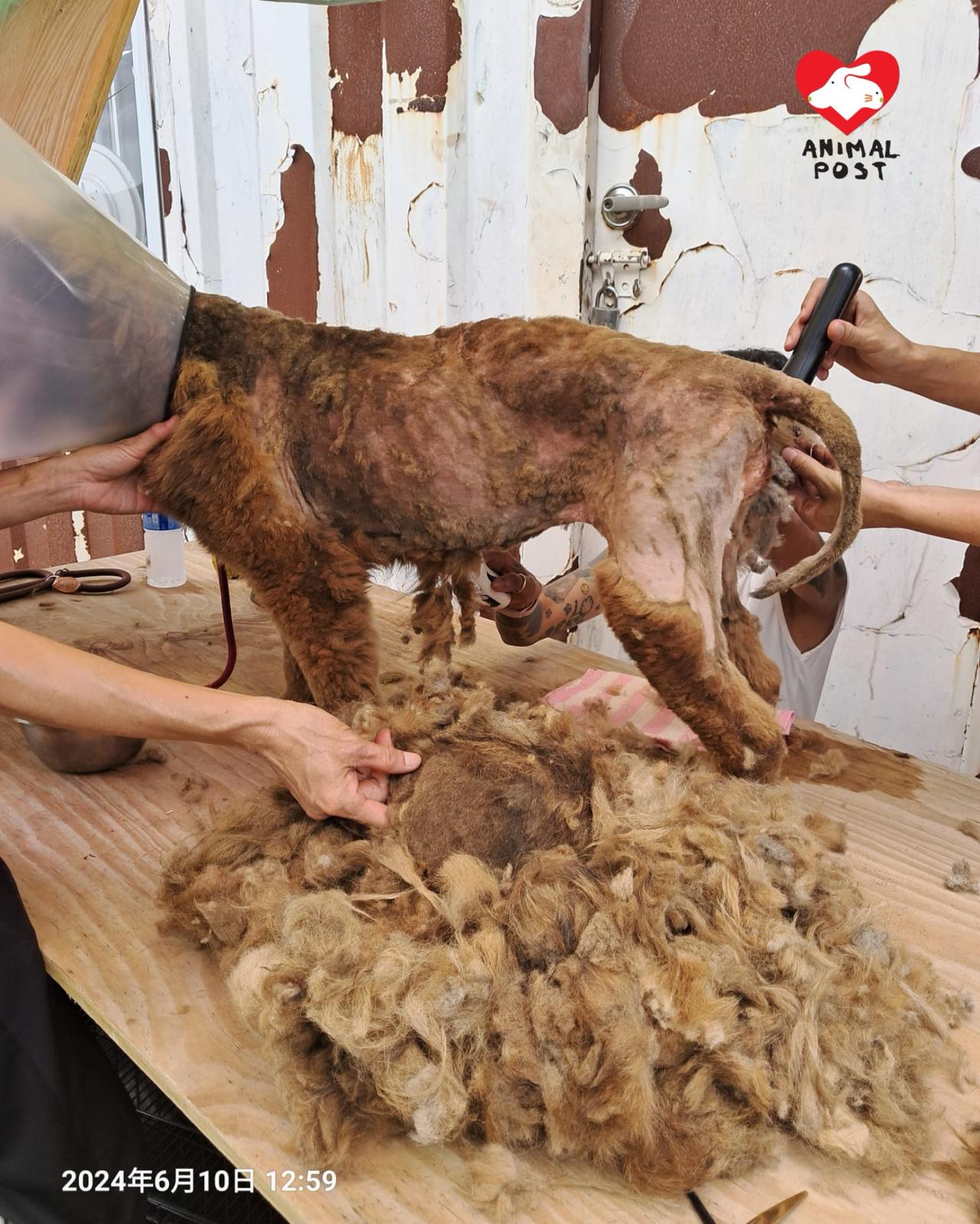 「烏烏在倉生活時,她是不親人,或許她終日記住自己需要幫助主人看守貨倉,當有人行近貨倉,她就會吠。烏烏因長期無人打理,狗毛是「一餅餅」,但當我們帶她走時,把這些毛剃掉,烏烏完全就像變了另一隻狗般,非常嗲人,任人撫摸。」Loretta憶述,烏烏獲救時非常瘦弱,因長期缺乏照顧,其身上的厚毛更誇張地重達3公斤。