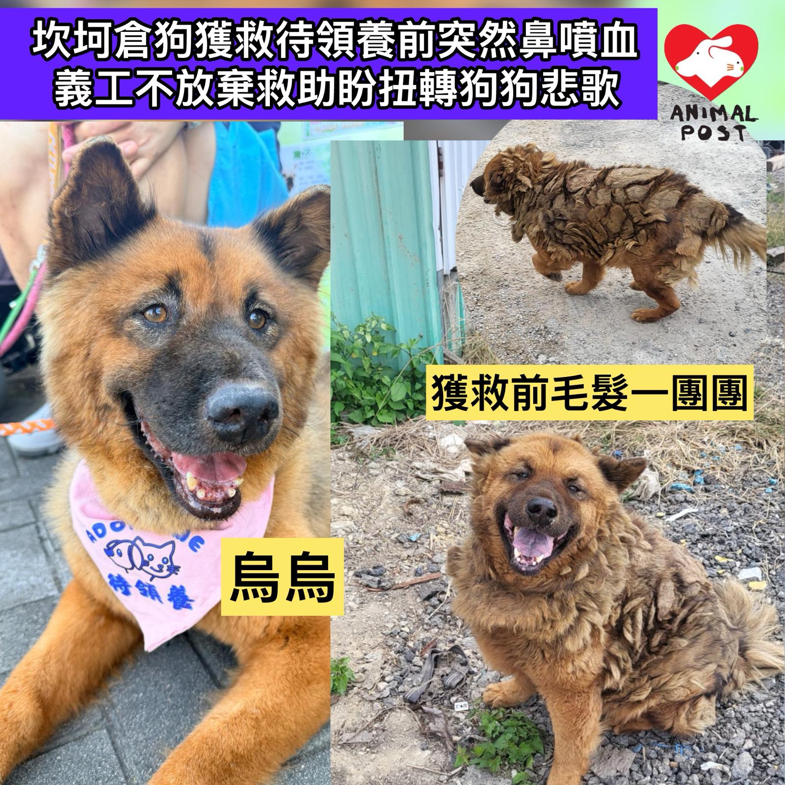 坎坷倉狗獲救待領養前突然鼻噴血 義工不放棄救助盼扭轉狗狗悲歌
