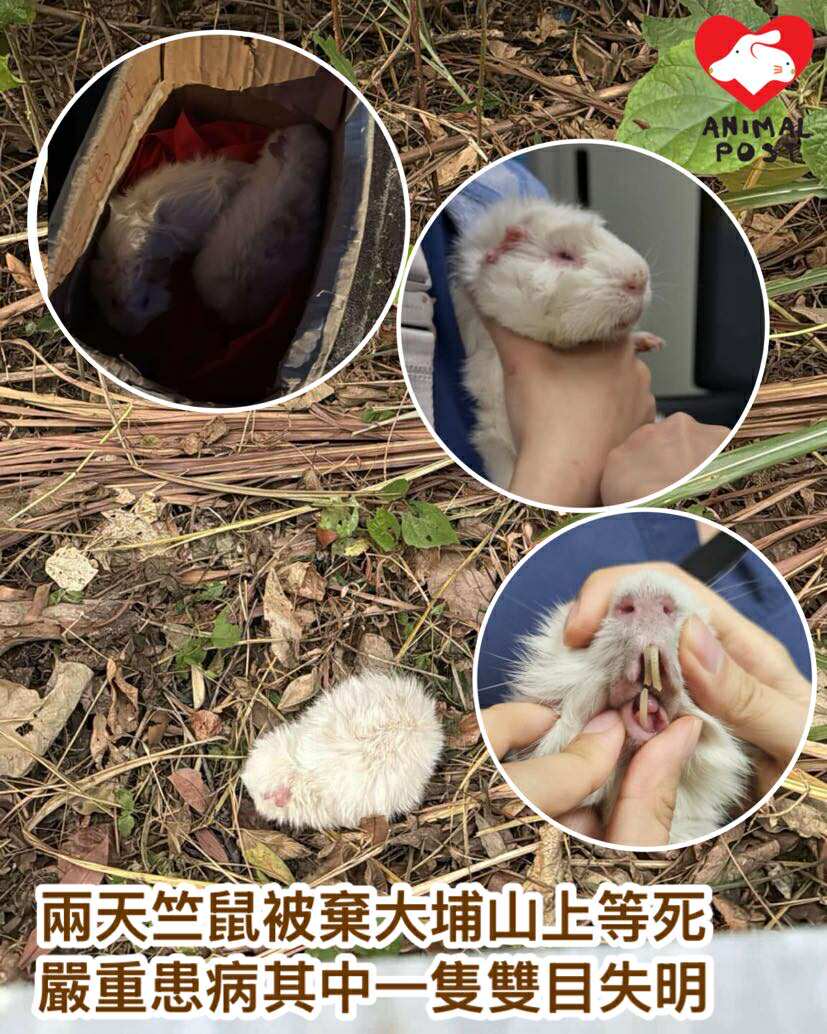 香港天竺鼠豬友會義工表示,1月24日收到市民求助,指在大埔的山上發現兩隻被棄養的天竺鼠,他們當晚即接收兩隻天竺鼠,分別改名為強仔和勇勇,但發現兩鼠的健康問題十分嚴重。