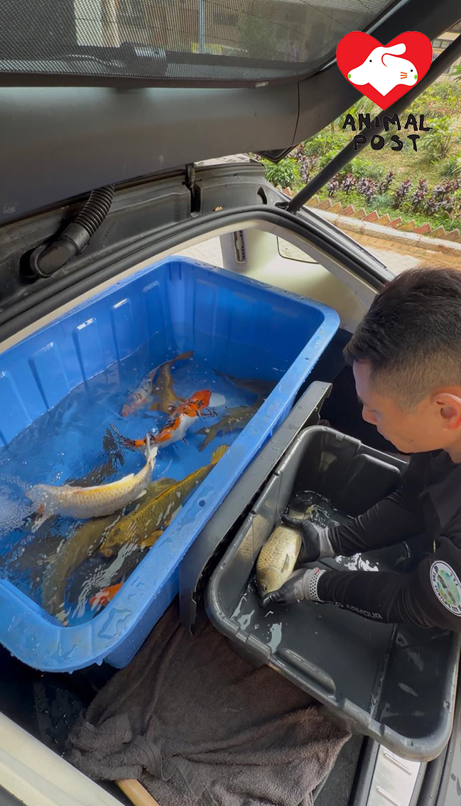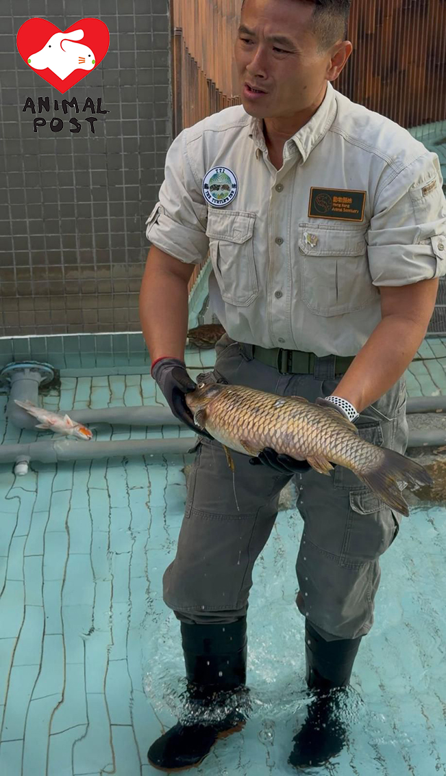 他說水池內有三類魚,一種為觀賞魚、一類為用來餵魚的魚、一類為食用魚,如塘塘虱、生魚等,當中食用魚或較難安排領養,而他們暫時也優先救走熱帶魚或本身有傷的魚。