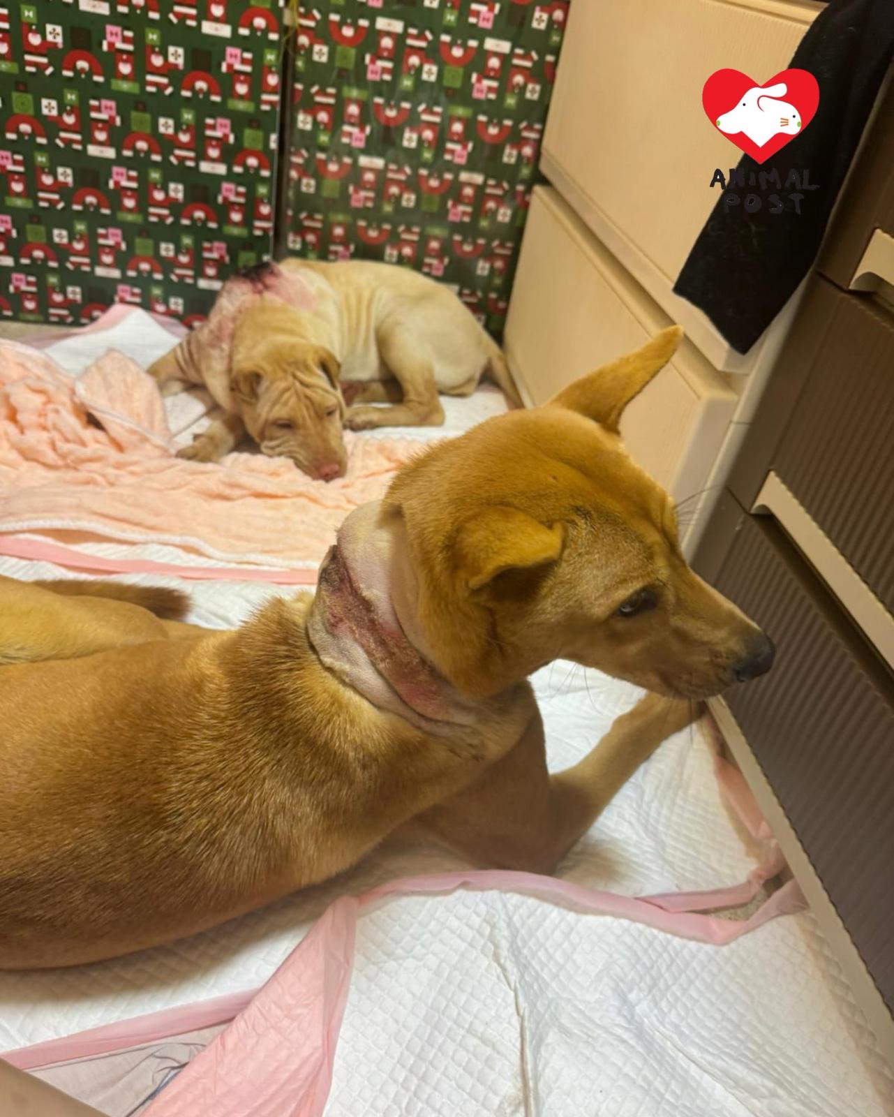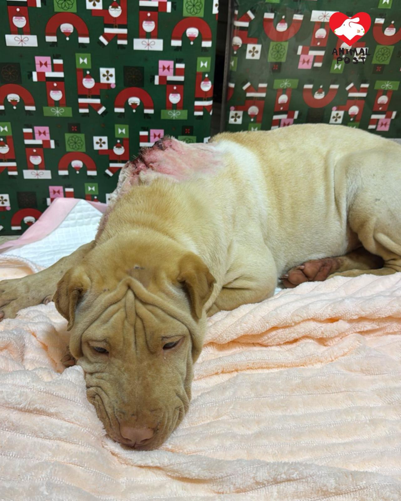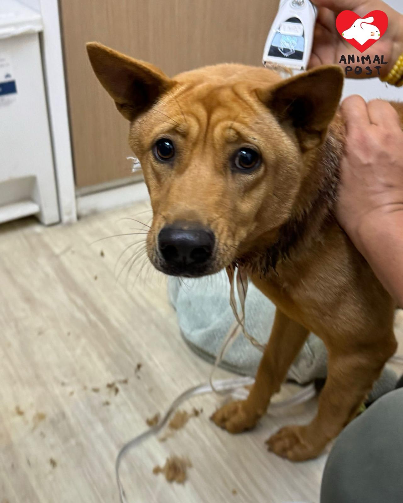 流浪狗之家創辦人Angela表示,她昨日在群組看到有人發現在粉錦公路打石湖村附近,有一隻沙皮BB頸部有一個很大的傷口,Angela立即著同事駕車前往,與發現的義工會合後,更首先在一個士多啤梨園發現一隻同樣頸部受傷的狗狗,該場主見有義工到場,立即指這狗狗並非是他的,著義工拿走及帶他醫治。Angela立即拖著這狗狗,另外兩名男同事及義工立即再尋找沙皮bb,惟苦尋不果。