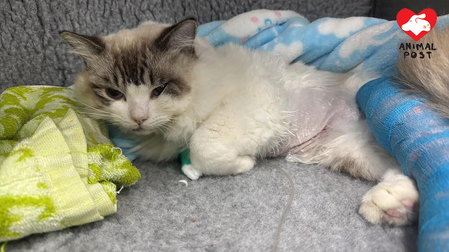阿虎愛屁義工表示,前日晚上接收了一隻元朗墮樓貓貓,「當時主人帶貓去看醫生,說貓貓由5樓跌落街,但獸醫檢查後,那主人不肯醫,直接在診所棄養,診所姑娘聯絡我們求救。」他表示,貓貓不但有3處骨折,胰臟更撕裂內出血,肺部也開始出血,需要立即進行輸血。