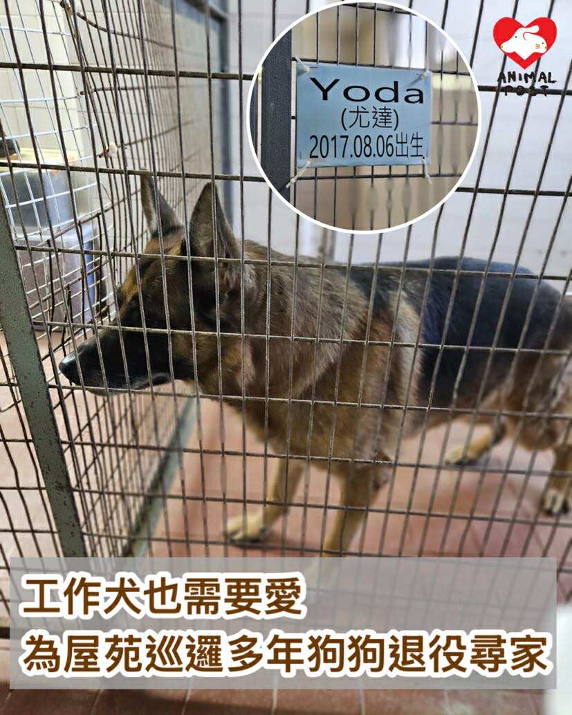【動物專訊】在沙田一屋苑擔任巡邏犬多年的8歲狗狗Yoda,終於退役放下工作重擔,過去多年鐵籠為家,沒有享受過家庭生活。熱心市民Yan向義工安采妮求助,希望可以幫助忠心又友善的Yoda尋家,即使是遲來的幸福,也能夠安享晚年。